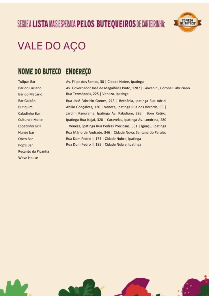 Confira a lista completa dos bares participantes no Vale do Aço: