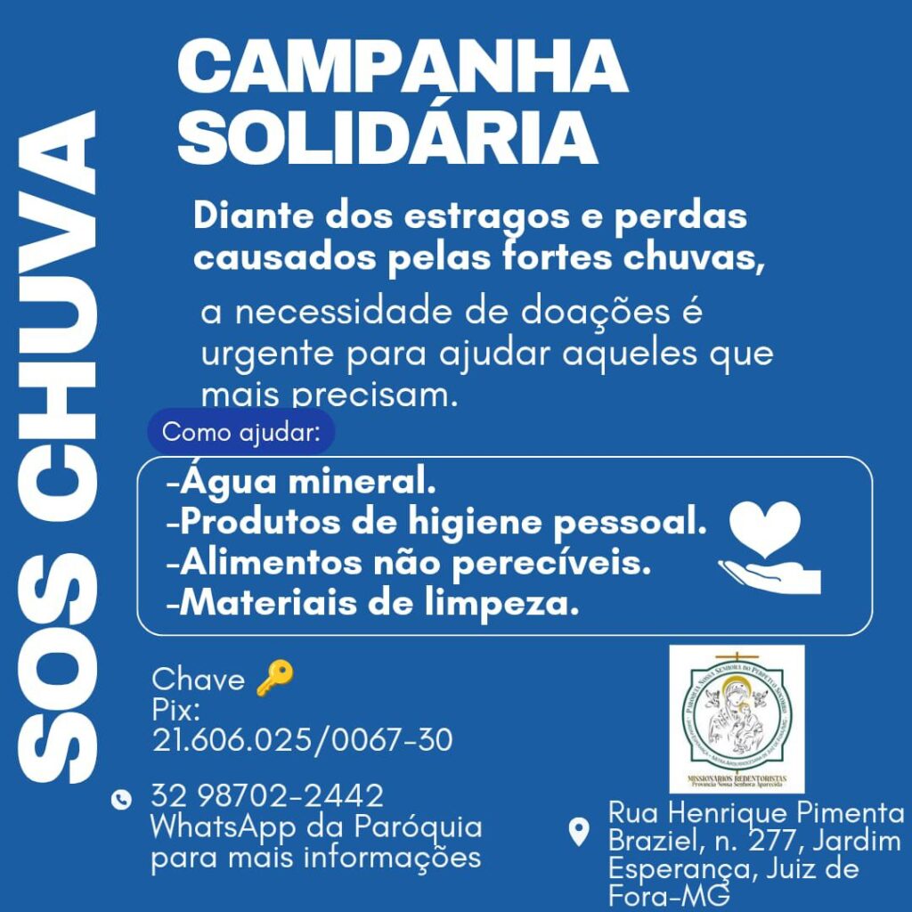 Diante do cenário crítico, uma grande rede de solidariedade foi ativada. A campanha “SOS Chuvas Campanha Solidária” está em pleno funcionamento. A Paróquia da Glória, também redentorista, uniu-se à iniciativa. O objetivo é prestar auxílio às famílias afetadas. Muitas famílias da Paróquia Nossa Senhora do Perpétuo Socorro perderam tudo. A comunidade se mobiliza para acolhê-las da melhor forma possível.